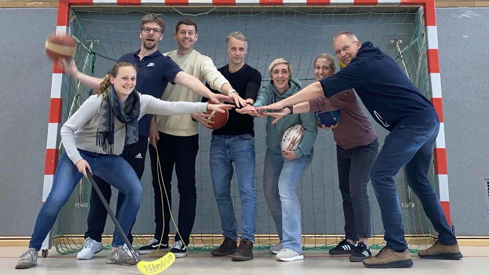 Letztlich hat der Schulsport die Aufgabe, Kinder und Jugendliche anzuregen und zu befähigen, bis ins hohe Alter ihre körperliche und geistige Leistungsfähigkeit und ihre Gesundheit durch regelmäßiges Sporttreiben zu erhalten (KMK, 2005). Und um dieses Ziel zu erreichen, haben wir engagierte Sportkolleg*innen, zwei Sporthallen, ein Außengelände und einen kurzen Weg zum Hallenbad nebenan. Außerdem veranstalten wir Turniere, Sportfeste und Sponsorenläufe.